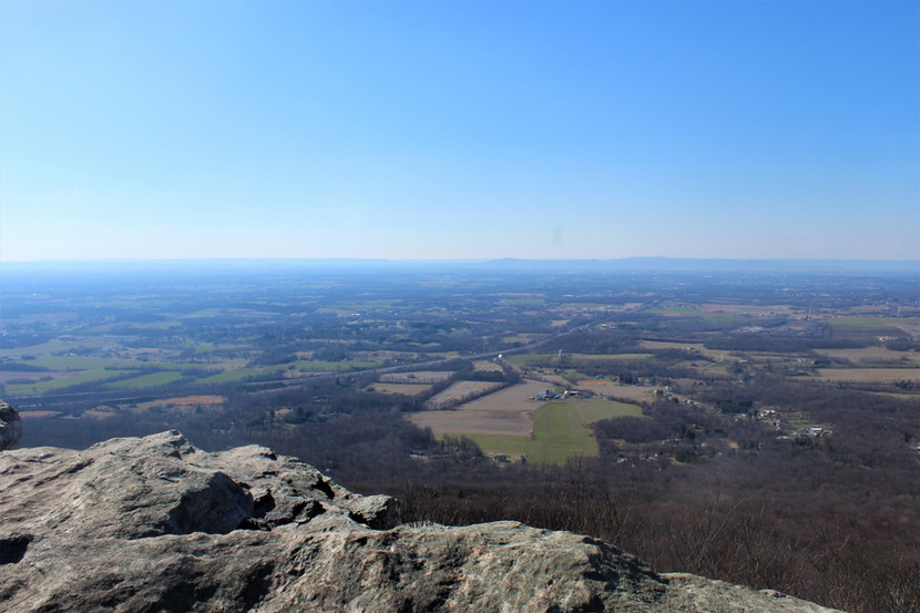 At the top is the Appalachian Trail intersection and the Pogo Campground. I made a right on the AT and the footpath became less rocky and relatively flat. Pretty soon, I reached the Black Rock Overlook. The overlook area is quite expansive, stretching a couple hundred yards with three different rock outcroppings! Black Rock stands an imposing 1200 feet above the Cumberland Valley, and on a clear day like when I went, you can see forty miles out!