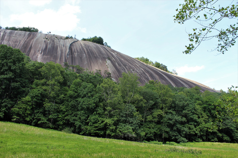 Stone Mountain is the centerpiece and namesake of one of North Carolina’s largest state parks. The 600-foot granite dome stands 2,305 feet above sea level and is part of a 25 square-mile pluton—a gigantic igneous rock that formed underneath the earth’s surface 400 – 500 million years ago. This fascinating geologic formation and its 14,000 acres of surrounding parkland feature over eighteen miles of trails, a 200-foot waterfall, and a refurbished, mid-19th century farmstead, attracting more than 450,000 visitors each year.