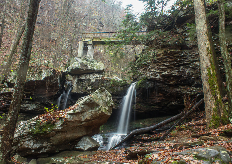 In more contemporary geological history, Cloudland Canyon developed from sedimentary erosion beneath Bear and Daniel Creeks. Superficial sandstone strata were destabilized as water flows deteriorated underlying layers of shale—a brittle and easily erodible rock composed of fine-grained clay particulates—causing massive rock formations to collapse into the expanding valley below. At its current extremes, Cloudland Canyon spans nearly a half-mile across and reaches depths over one thousand feet.