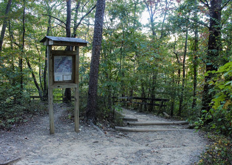 The yellow blazes diverge near a small footbridge and information board at the 1.3 mile mark. Going clockwise, the trail winds through dense forests and parallels a ridgeline overlooking Trenton, Georgia, and neighboring Sand Mountain. A panoramic view of Sitton Gulch marks the northern apex of Cloudland Canyon. The footpath continues another mile south along the canyon’s western rim, offering several spectacular vantages into the gorge. The loop reconnects with itself at mile 3.6 and hikers may retrace their outbound steps back towards the main trailhead.